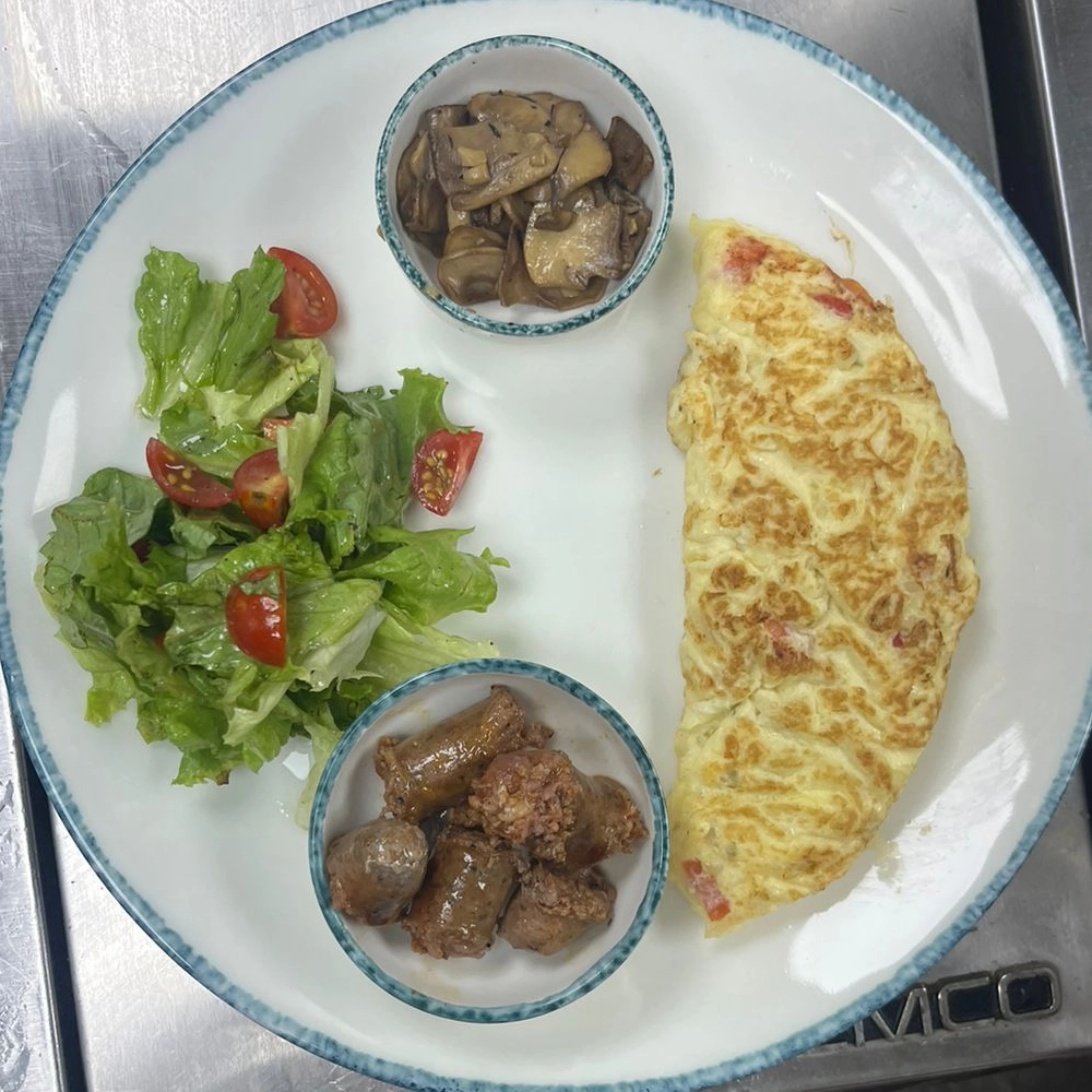 Choice of 2 Eggs, Sausages, Mushrooms, Bread of Choice, House Salad.